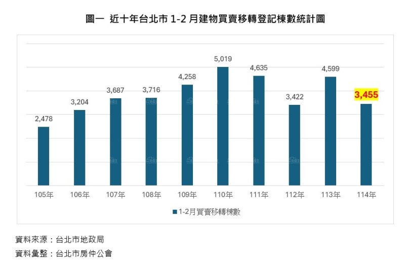台北市1-2月移轉登記棟數創7年來次低 ...