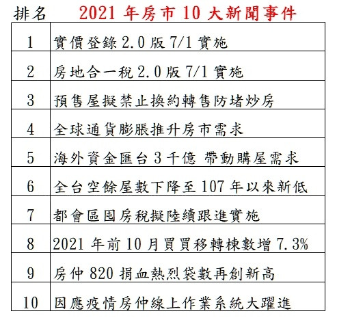 2021年房市10大新聞